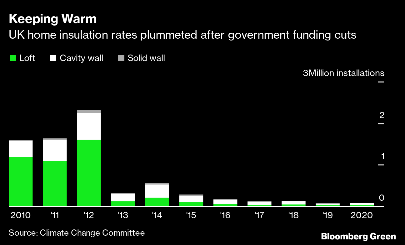 Over the past decade, a range of energy-efficiency measures such as home insulation have been botched or abandoned under successive prime ministers, according to the Climate Change Committee. Insulation rates remain well below the peak rates of delivery achieved before 2012, when key policies were scrapped, the statutory body said in 2019.