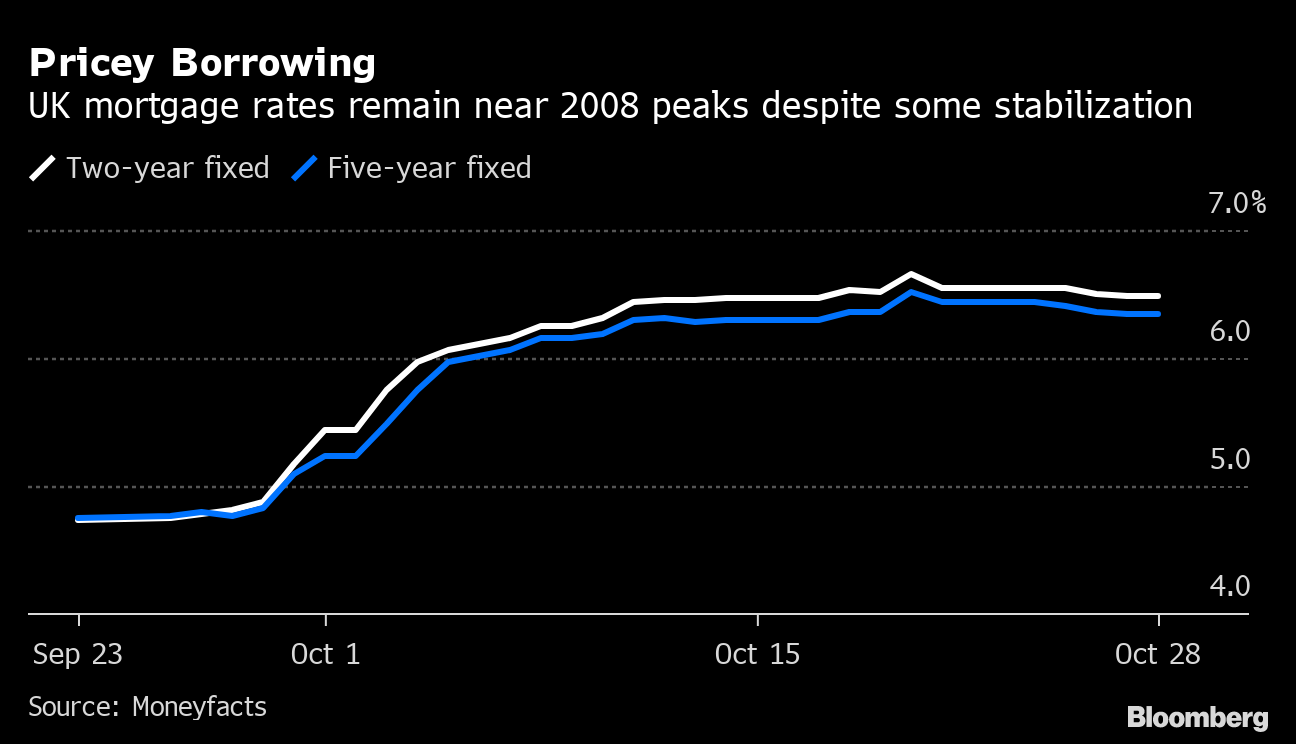UK mortgage rates have surged close to peaks last seen in the 2008 financial crisis. Liz Truss roiled markets during her brief spell as prime minister with promises to boost borrowing and slash taxes, a package that since has been reversed after Sunak took over.
