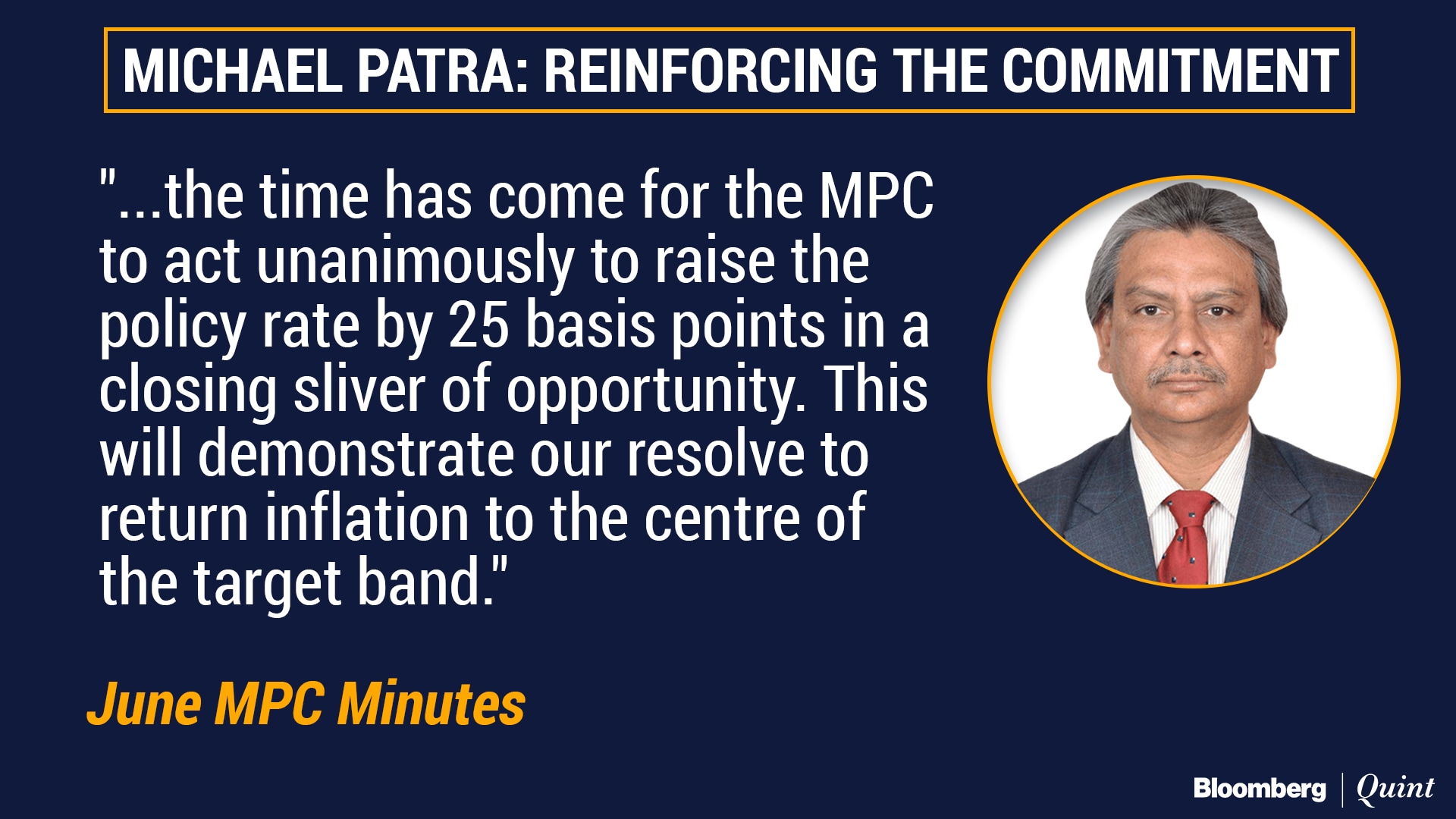 In June, he impressed upon the committee that it must act unanimously and send out a strong message that the MPC is committed to meeting the mid-point of its inflation target. Most analysts believe that Patra will vote for another rate hike in August.