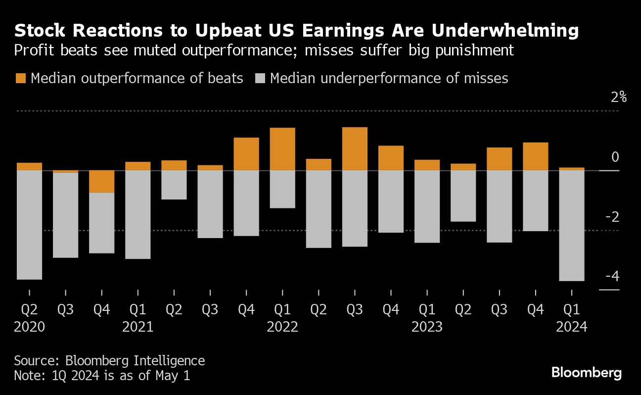 And firms missing expectations are suffering the worst punishment in the data's records going back to 2019, lagging the S&P 500 Index by a median of 3.7%.