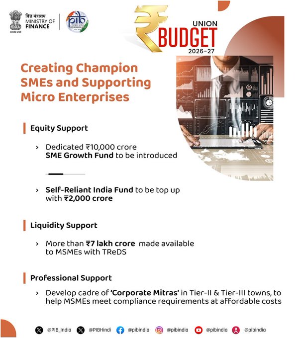 The Union Budget 2026 proposed to launch a scheme to revive 200 legacy industry clusters. The government plans to introduce Rs 10,000-crore SME growth fund to incentivise SMEs based on select criteria.