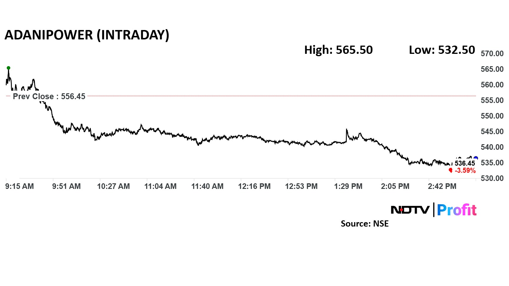 Adani Power's share price was trading 3.6% lower at Rs 536.45 apiece at 3:15 p.m., compared to a 0.4% decline in the benchmark Nifty 50. The stock has fallen 9% in the last 12 months and 1.3% since the start of this year.