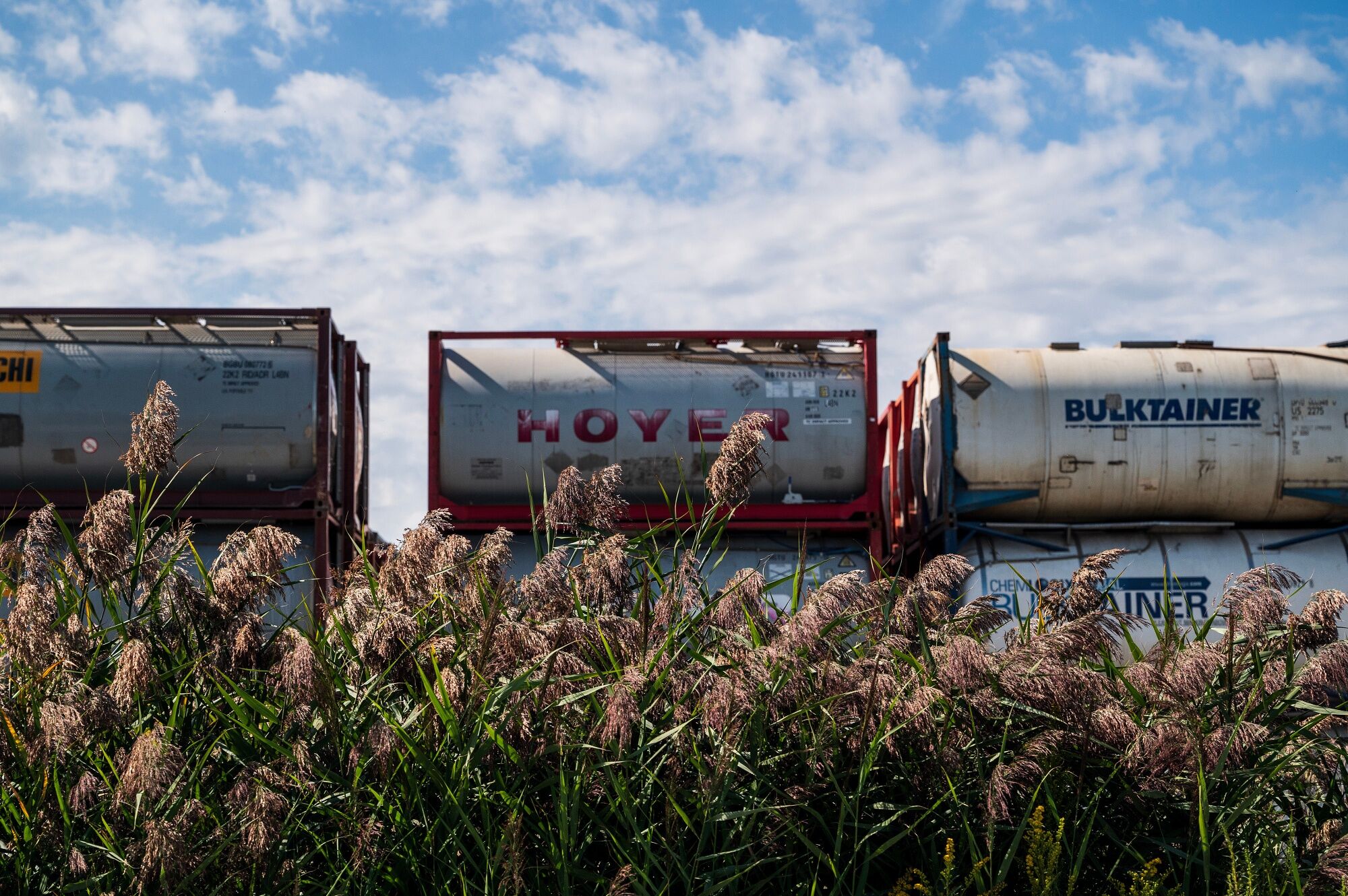 ISO tank containers at a Kinder Morgan facility in Chicago, Illinois, US, on Wednesday, Oct. 11. (Photographer: Christopher Dilts/Bloomberg)