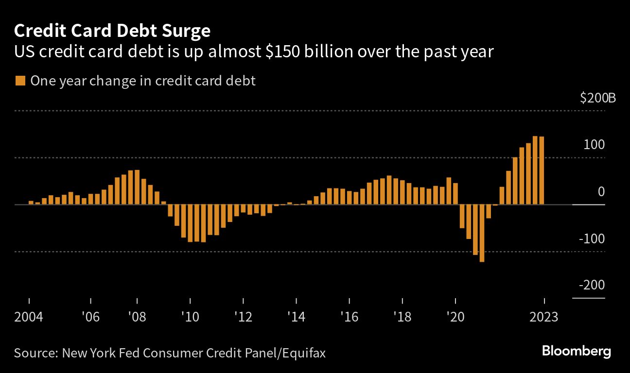 (Bloomberg) -- Credit-card balances surpassed $1 trillion for the first time last quarter in data from the Federal Reserve Bank of New York, showing how even more widespread credit has become among American consumers as the US economy recovered from the pandemic.