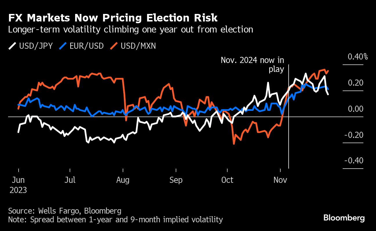 Erik Nelson, a currency strategist at Wells Fargo, said the increase in volatility is only a harbinger for more market-moving events to come in 2024. “We'll see two big waves, one around the primaries, and the second again in October and November,” Nelson said in a Wednesday interview.