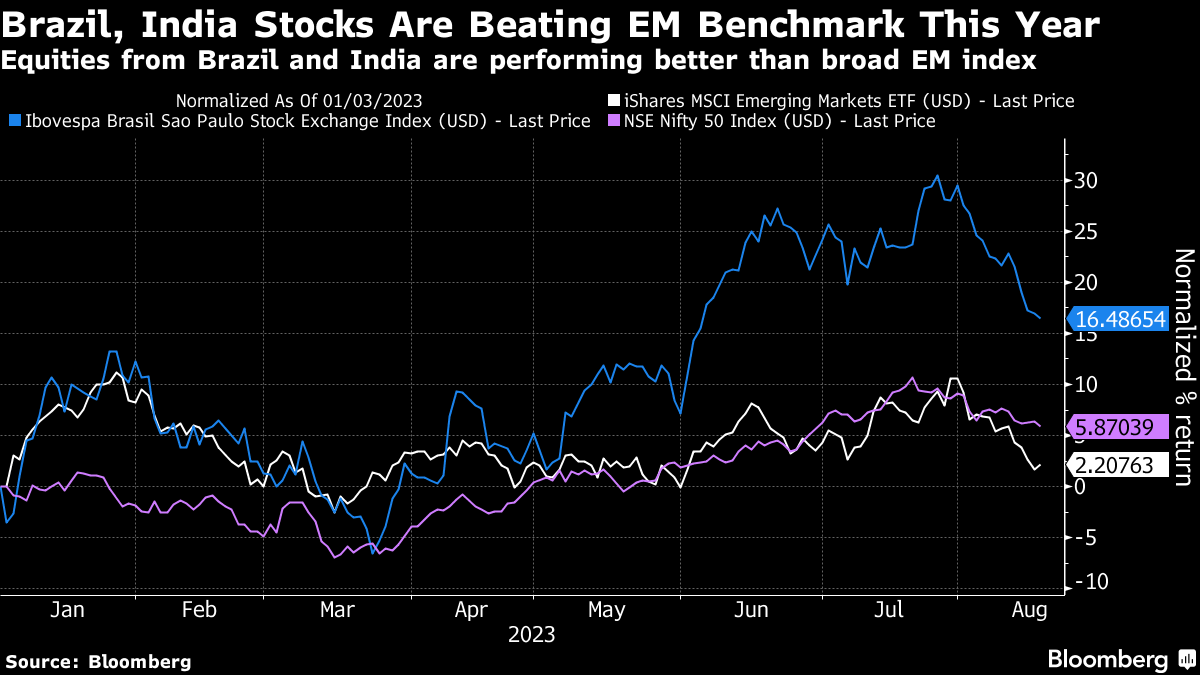 Brazil's Ibovespa is up almost 5% this year, gaining five times as much as the MSCI Emerging Markets Index. India's Sensex is also outperforming with a 6.8% advance.