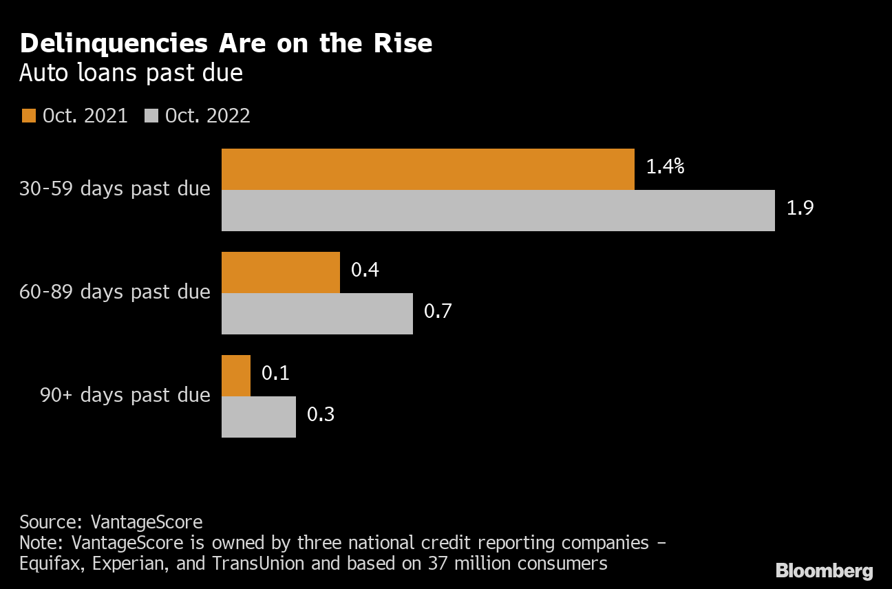 “We expect delinquencies to continue to increase, with new credit-card and auto delinquencies reaching pre-pandemic levels in the first half of next year,” Moody's Investors Service said in a report.