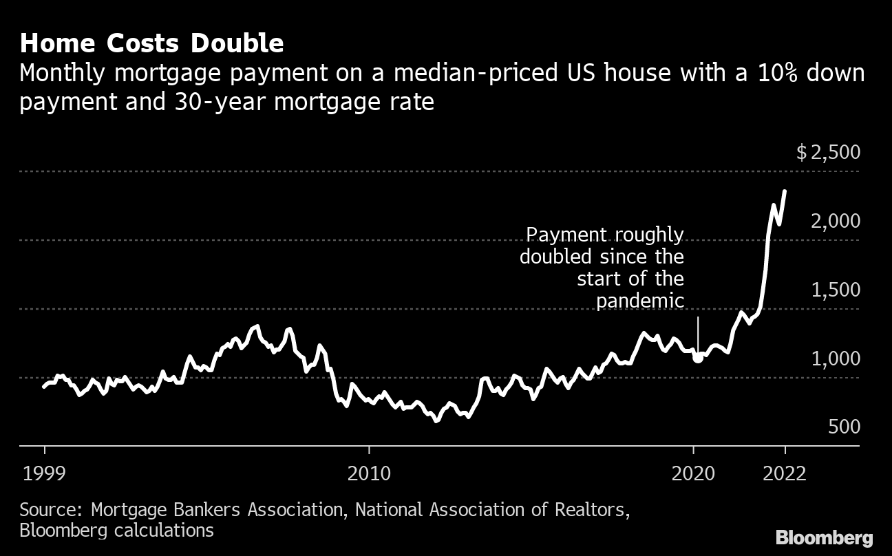 The higher rates, coupled with a surge in home values during the pandemic, pushed the monthly mortgage payment on a median-priced house to more than $2,000, up from about $1,100 just before Covid-19 hit.