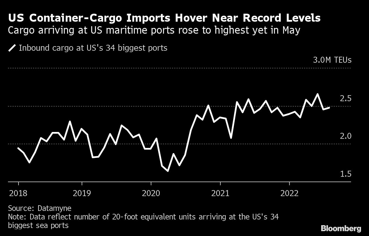 The National Retail Federation, which represents about 18,000 US retailers, projects that shipments will retreat in the second half of 2022, following record-setting volumes earlier this year. Still, the Washington-based trade group sees a 2% increase in imports for the full year, driven by strong consumer demand amid historic-low unemployment rates and inflated wages and savings in the first half of the year.