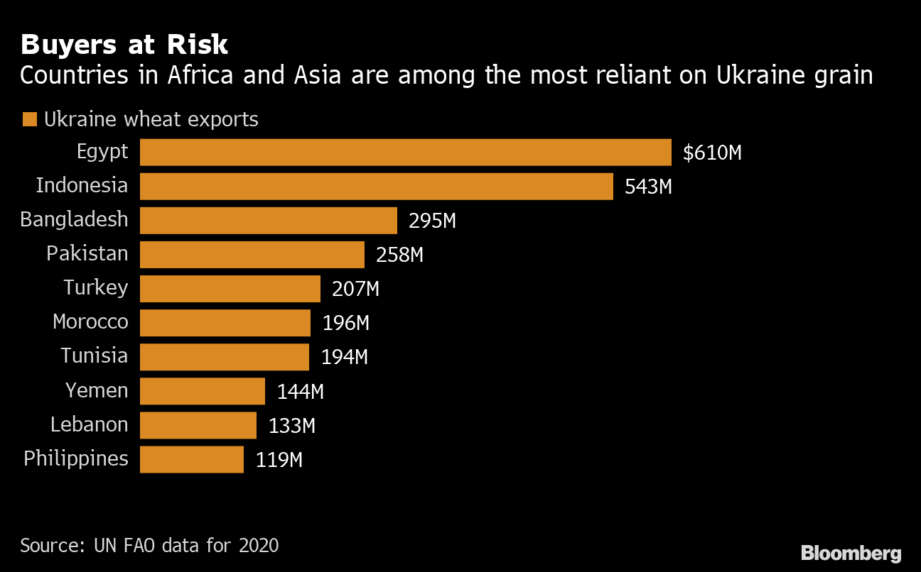 US and European officials have accused the Kremlin of using food as a weapon, preventing Ukraine from exporting. Russia denies that even as it has attacked key ports, blaming the shipment disruptions on sanctions imposed by the US and its allies over the invasion.