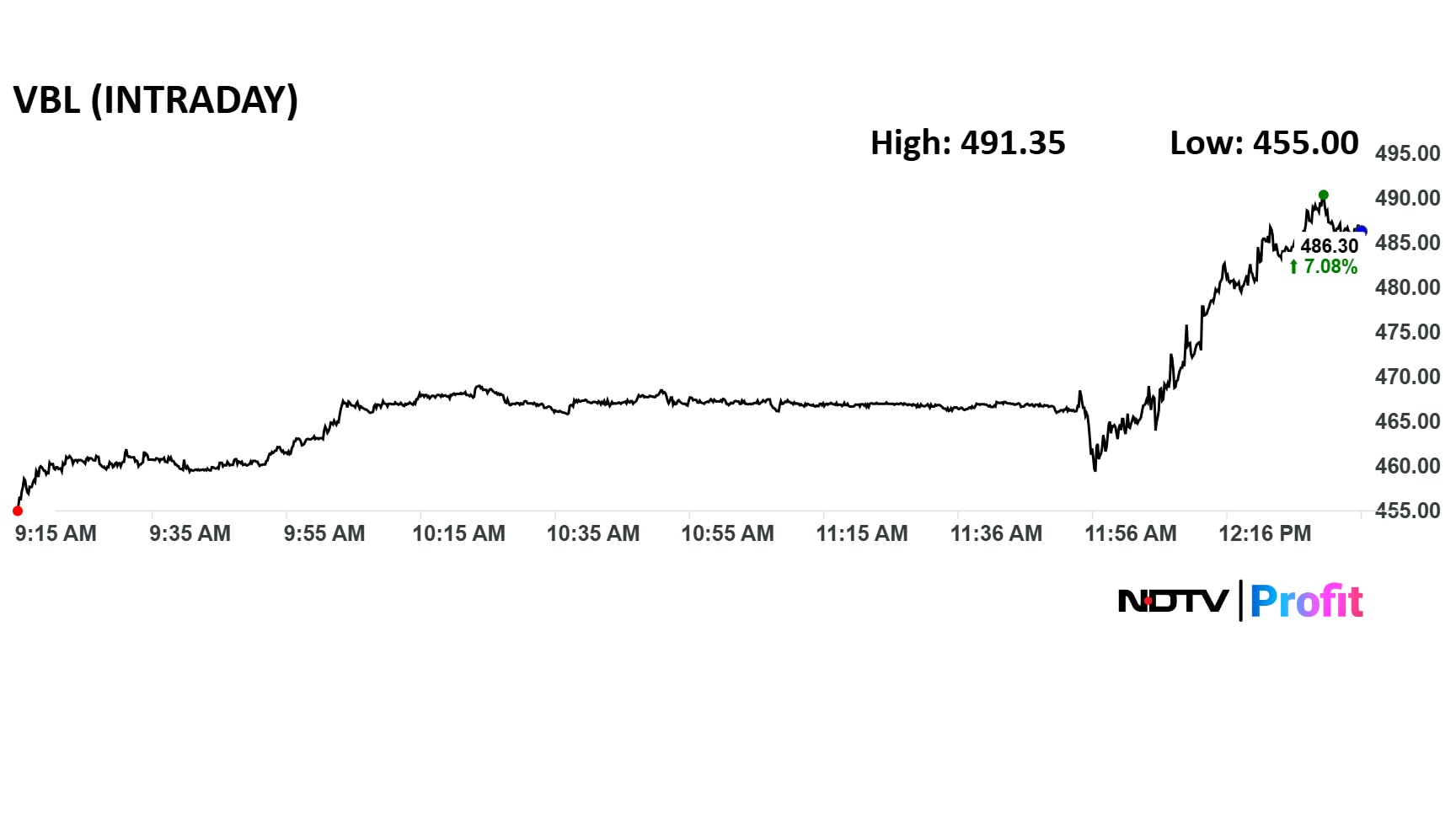 Varun Beverages' share price jumped 7.5% to Rs 491.35 apiece.