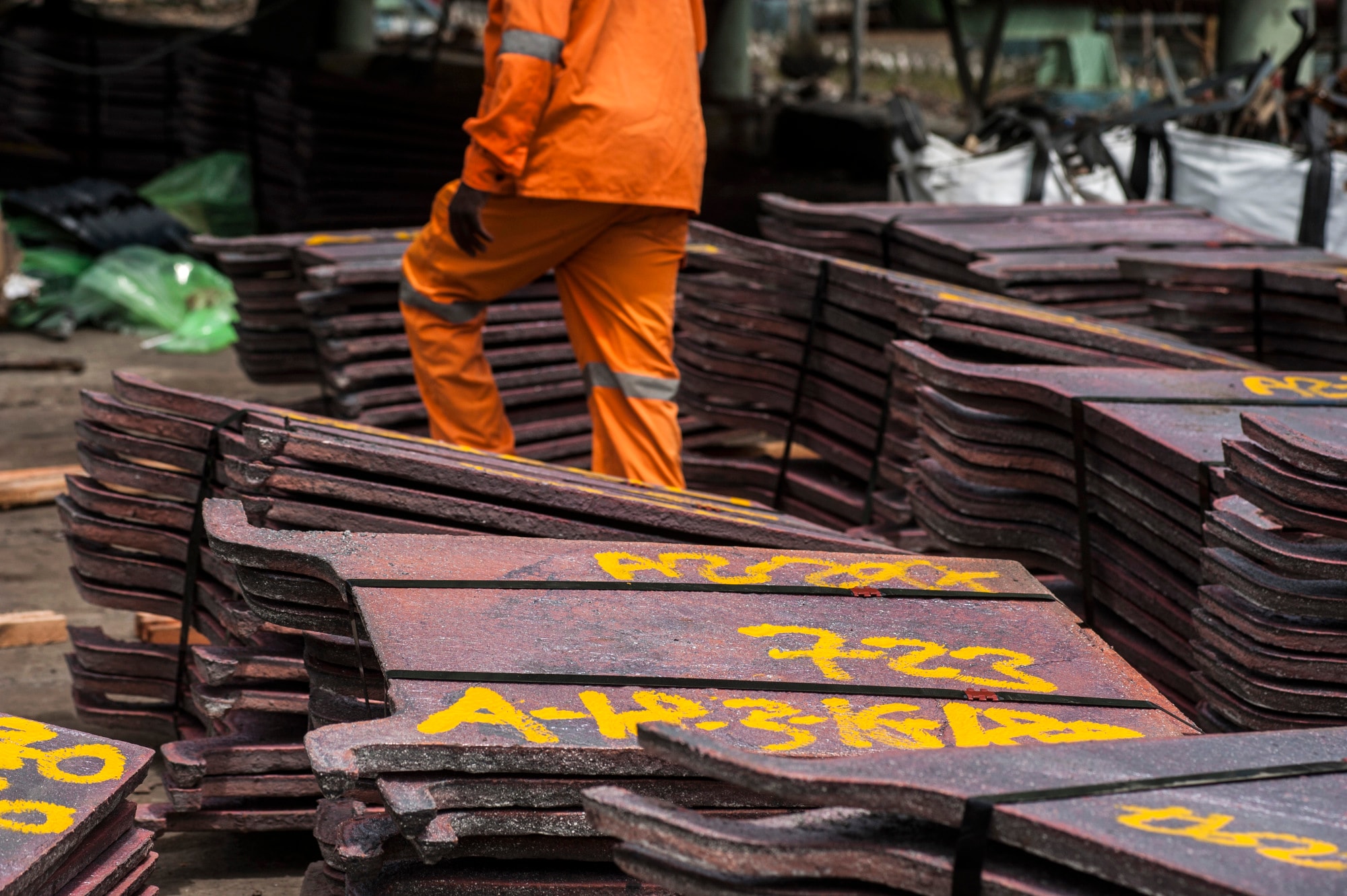 Copper plates awaiting shipping at a Konkola Copper Mines site in Zambia.