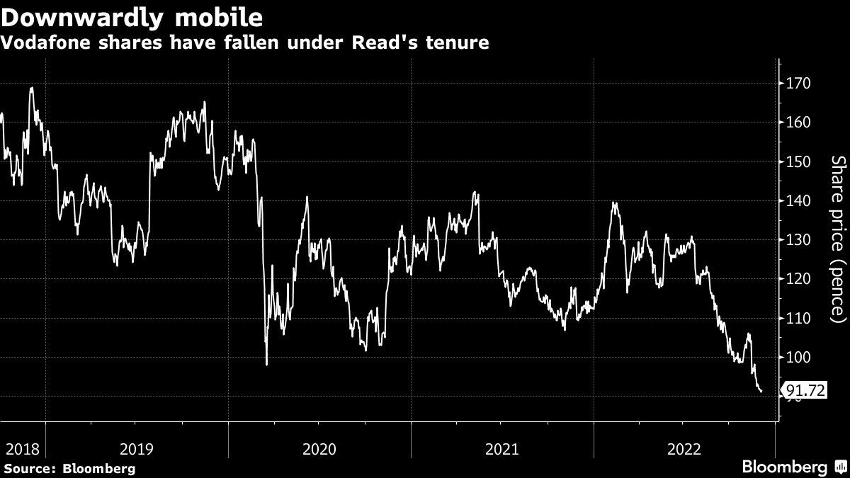 Vodafone's share price has sunk about 44% since Read took over in October 2018. In that time the Newbury, England-based mobile and broadband giant has retrenched and cut debt. Read's biggest move may have been to spin out and list the company's tens of thousands of mobile masts, selling a stake in Frankfurt-listed listed Vantage Towers AG to a private equity consortium in a deal that valued the business €16.2 billion ($17.1 billion) last month.