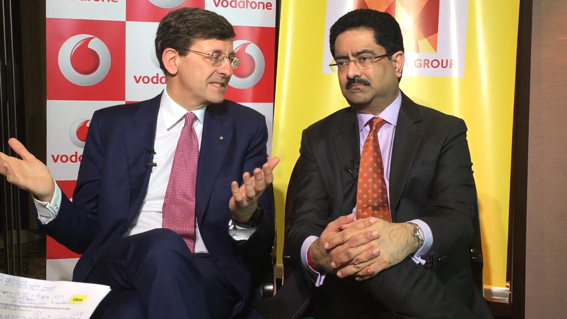 Vittorio Colao, chief executive, Vodafone Group Plc (left) and Kumar Mangalam Birla, chairman, Aditya Birla Group. (Photo: BloombergQuint)