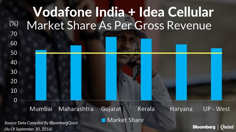 The aggregate revenue market share of the entity will also breach the 50 percent cap in seven circles - Mumbai, Maharashtra, Gujarat, Kerala, Haryana, Uttar Pradesh (West). The combined aggregate revenue market share stands at exactly 50 percent, as of September 30, 2016.