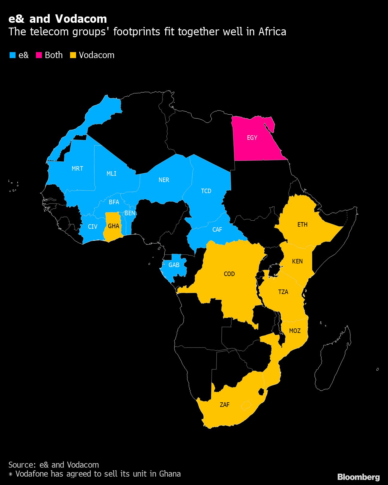 While Vodafone has always seen the African unit as a core part of the group, the exercise shows that it's willing to study a wide range of alternatives as it casts around for a way to stem a decline in its shares. Billionaire John Malone's Liberty Global Plc disclosed a 4.9% stake in Vodafone on Monday, joining other strategic investors French billionaire Xavier Niel and state-backed Emirates Telecommunications Group Co., formerly known as Etisalat and now called e&.