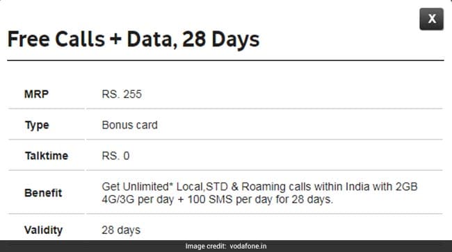 In a bid to take on the recent offers announced by Reliance Jio and Bharti Airtel, Vodafone introduced a new prepaid recharge plan priced at Rs 255. Vodafone's Rs 255 prepaid recharge plan offers 2GB per day data for a period of 28 days, as mentioned on the official website of Vodafone- Vodafone.in. Unlimited local, STD and roaming voice calls are also bundled with this plan. Vodafone's all-new Rs 255 prepaid plan now directly takes on Jio's Rs 299 offer and Airtel's Rs 249 recharge plan. Jio's Rs 299 prepaid recharge plan offers 3GB per day data for a period of 28 days. Airtel's all-new prepaid recharge plan priced at Rs. 249 offers 2GB or gigabytes of data per day for 28 days.