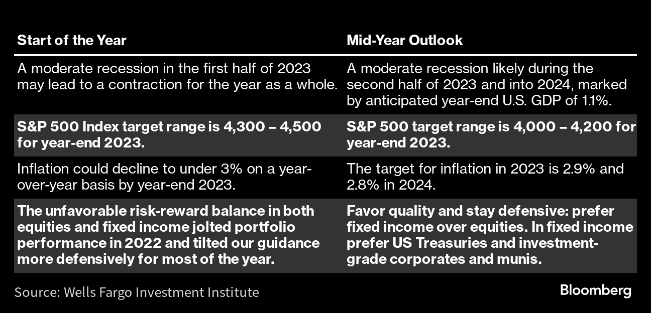 Wells Fargo Investment InstituteIt is pushing its recession forecast later and has lowered its target range of returns for US stocks.