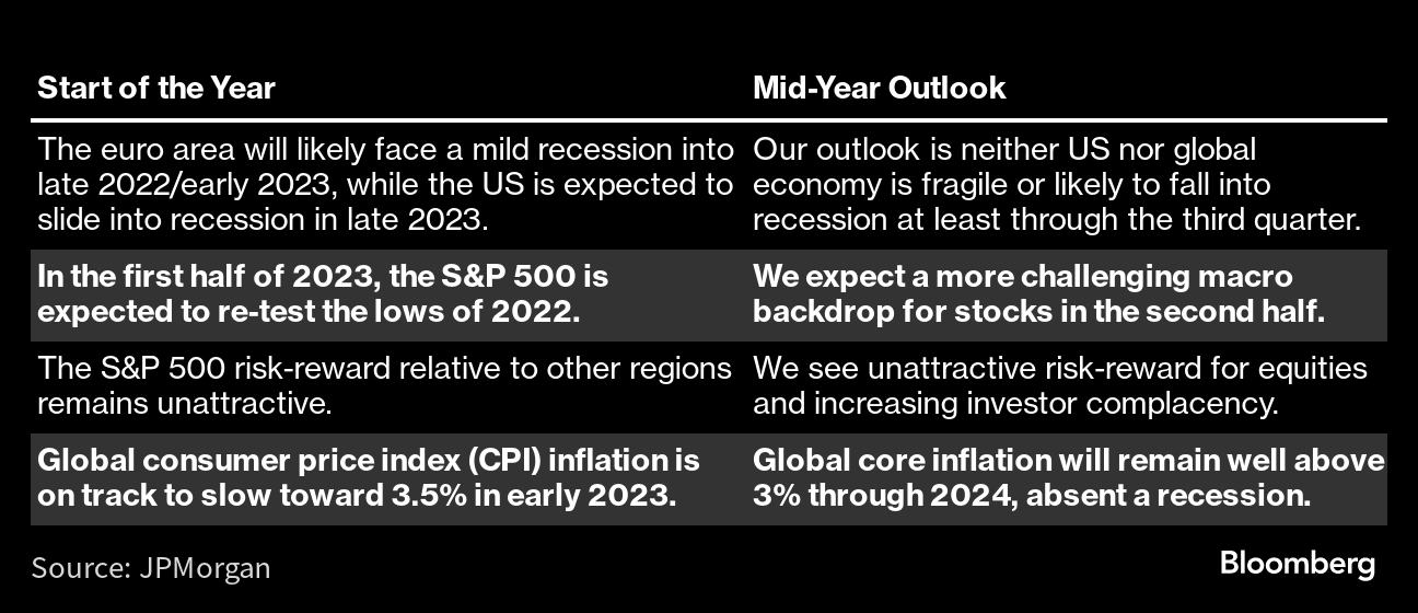JPMorganThe bank is currently forecasting weakness for equities in the second half of the year amid challenging macro backdrop.