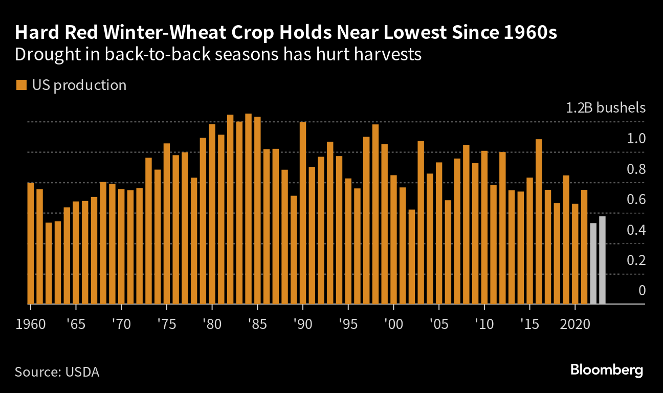 Drier weather could bode well for grain quality in North America's wheat belt, although it's limiting output. Back-to-back droughts kept US production of hard red winter-wheat — used for all-purpose flour — near the lowest since the 1960s. Parts of Canada have also been gripped by dry spells.