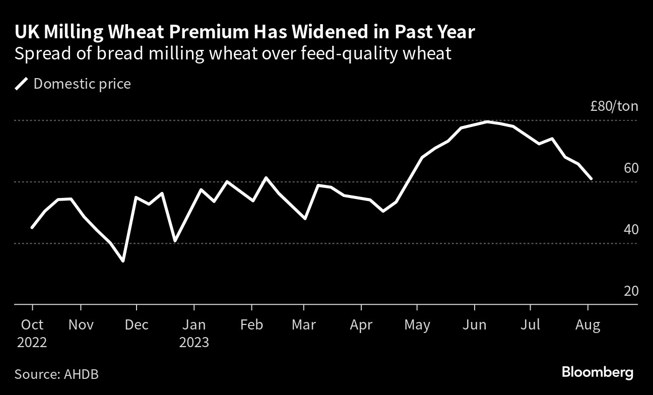 The situation is far worse in Ukraine: Just 35% to 40% of wheat will likely be milling quality, the lowest of the past decade, according to UkrAgroConsult. Not only have farmers had to contend with wet weather, Moscow's invasion has curbed the use of inputs like fertilizer. Crucially, the end of the Black Sea grain deal is also limiting the country's outlets to global market.