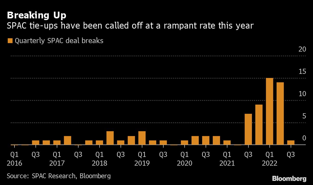 (Bloomberg) -- A flurry of blank check mergers were called off over the past 24 hours as target firms and SPAC sponsors deal with market turmoil that has shaken the industry and capital markets.