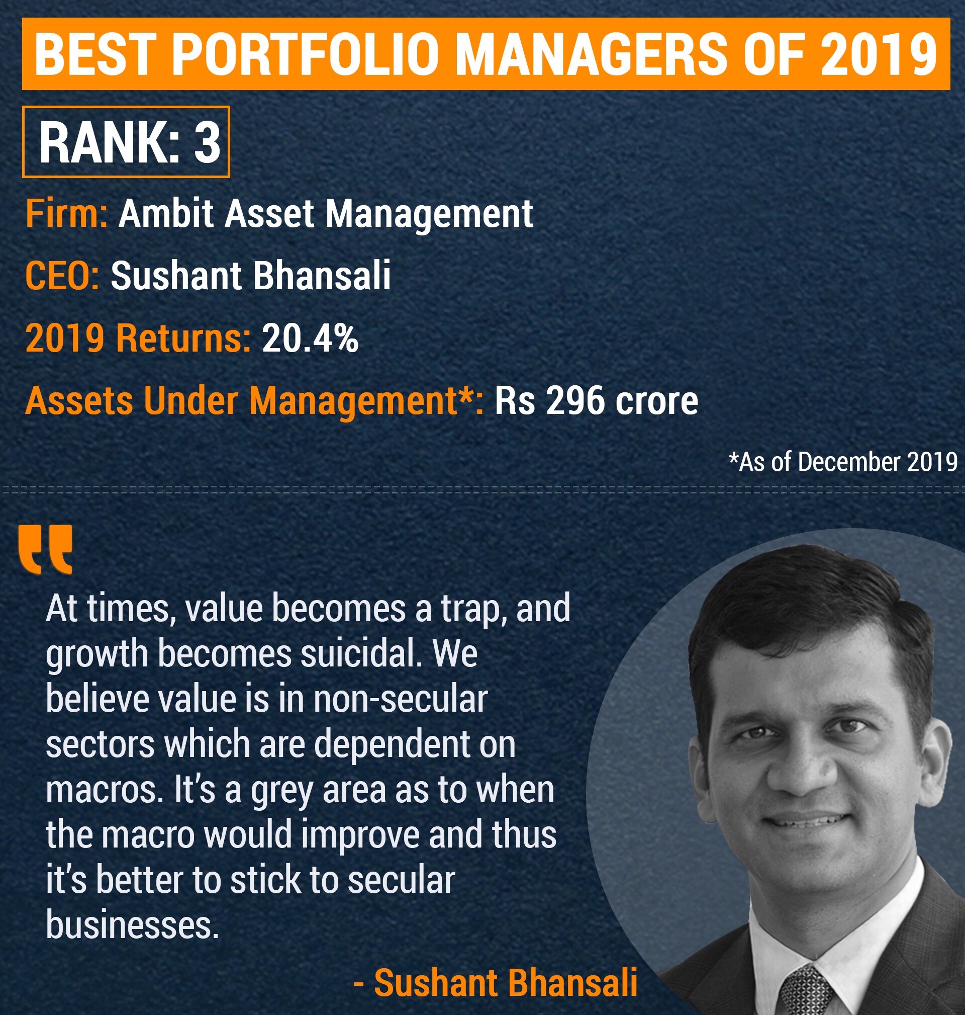 Sushant: I think what worked brilliantly—both in 2018 in 2019—these have been two of the toughest years in the equity markets that I have seen in the last 20 years. We haven't seen such drawdowns for such a long extent and the polarisation which is happening. What has worked is, we haven't changed our strategy. What has worked is, buy good and clean businesses with coffee-can component. You enter into great and good franchises and stay on invested.