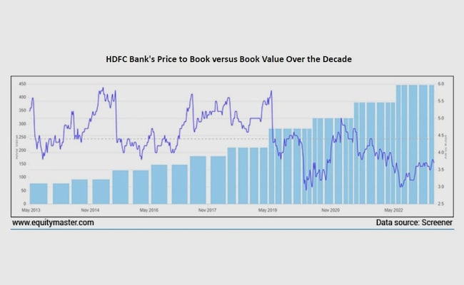 HDFC Bank's Price to Book versus Book Value Over the Decade