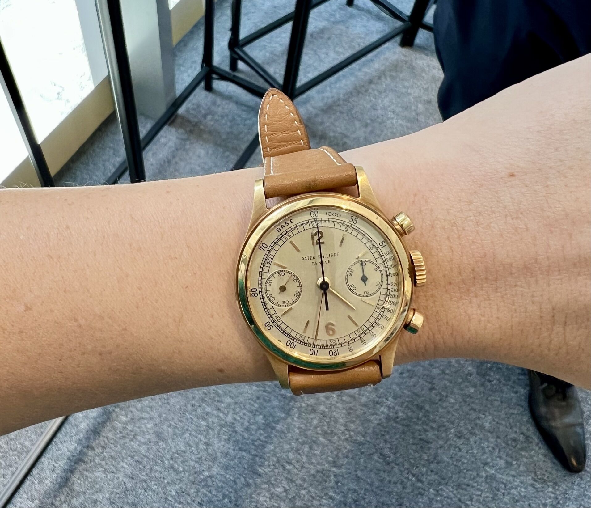 During a preview Tuesday at the auction house's showroom in the Dubai International Financial Center, I was lucky enough to try on a few: a 1953 Patek Philippe 18K gold chronograph, with an estimate of $200,000 to $300,000; a Rolex Day-Date ref. 1803 gold automatic wristwatch with an Arabic-language calendar, estimated at $20,000 to $40,000; and a Patek Philippe platinum perpetual calendar chronograph once owned by the boxer Mike Tyson, estimated at $240,000 to $440,000.