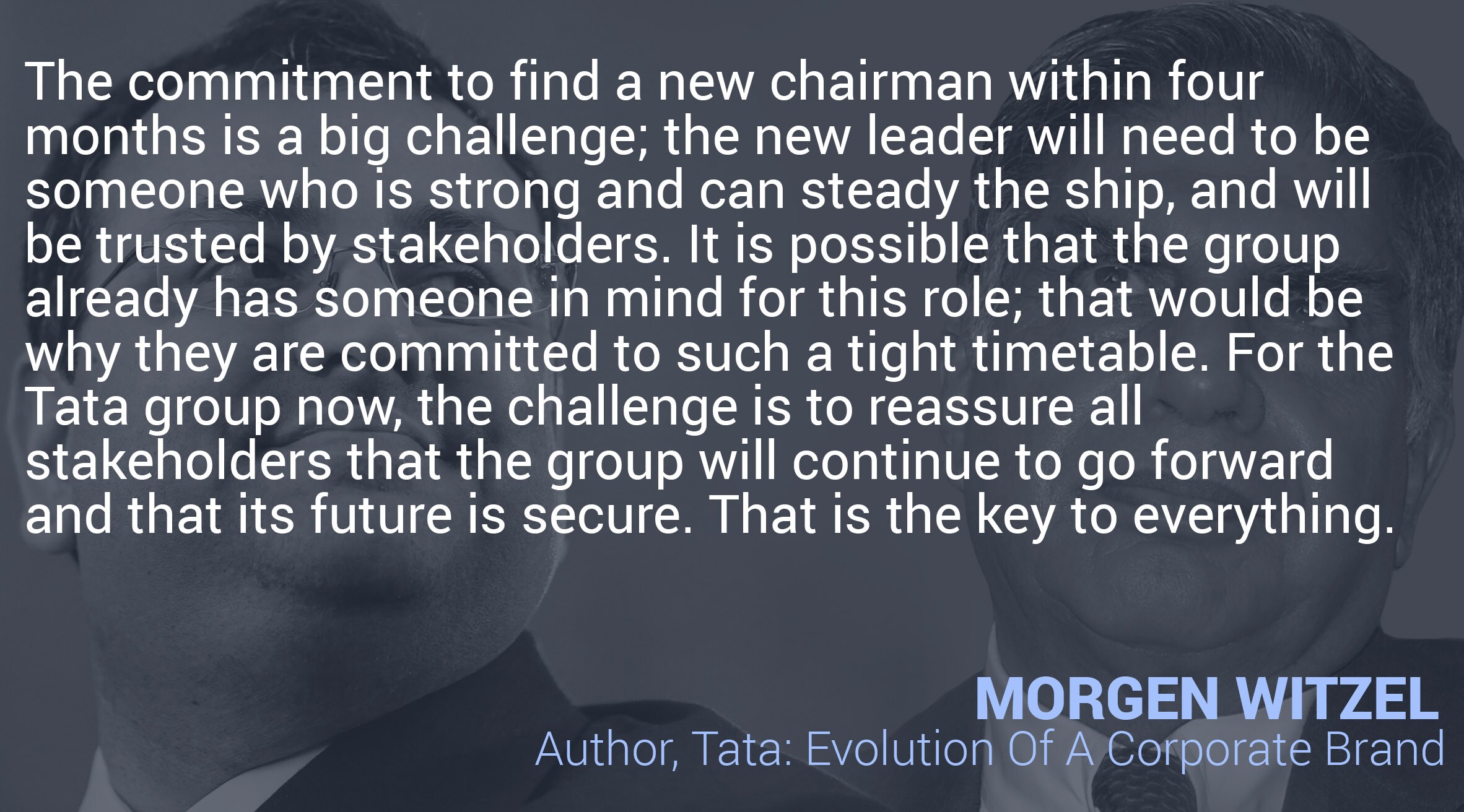 Appointing Ratan Tata, a familiar face, as the interim head may have been to reassure overseas stakeholders, Morgen Witzel, the author of Tata: Evolution Of A Corporate Brand told BloombergQuint.