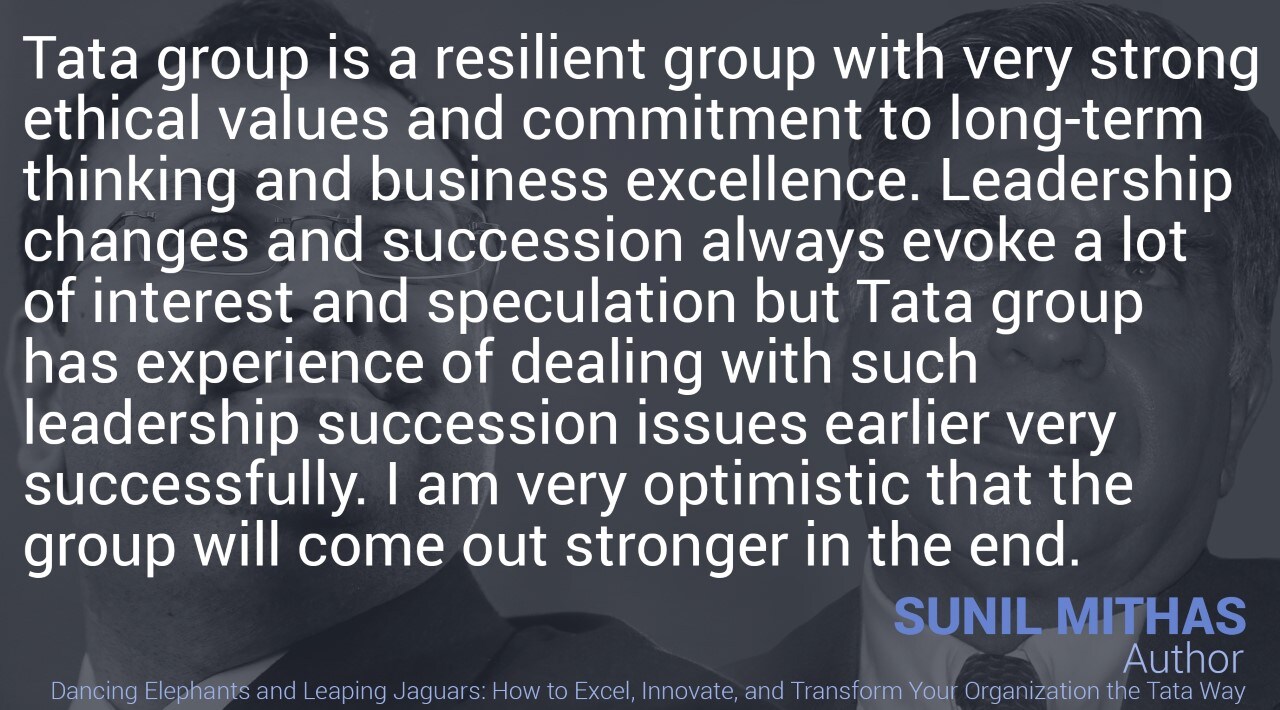Stanley Pignal from The Economist attributed Mistry's removal to the tame performance of the group's major companies under his leadership. Finding a replacement for Mistry in such a short time frame will be one of the most difficult tasks in corporate history, Pignal told BloombergQuint.