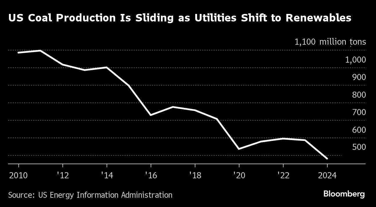 US coal output is expected to fall 18% next year in the first notable decline since the pandemic as utilities shift away from the dirtiest fossil fuel. With US power producers adding more renewables to the energy grid, coal is now expected to supply 15% of the nation's electricity next year, according to the latest short-term energy outlook by the US Energy Information Administration. That's down from coal's 20% share in 2022.