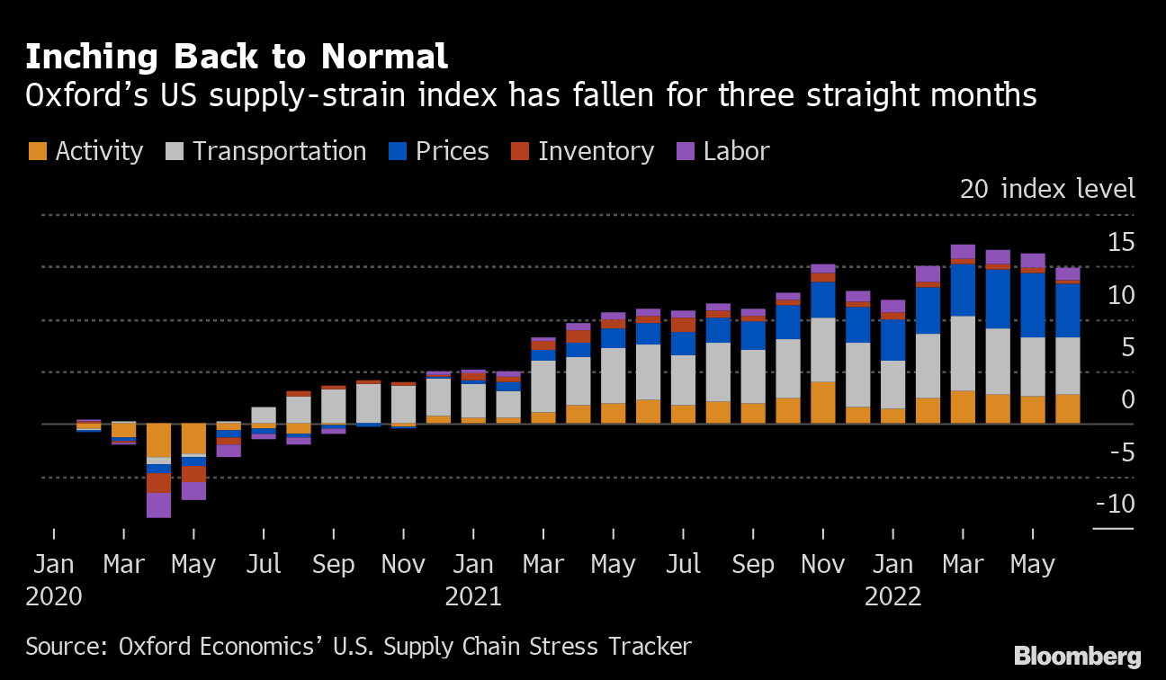 That's because supply strains, while still afflicting many consumers and businesses, are becoming more mundane than menacing like they were six months ago, especially in the US. Snarls have eased back from their pandemic peaks and some are already adding less inflationary pressure.