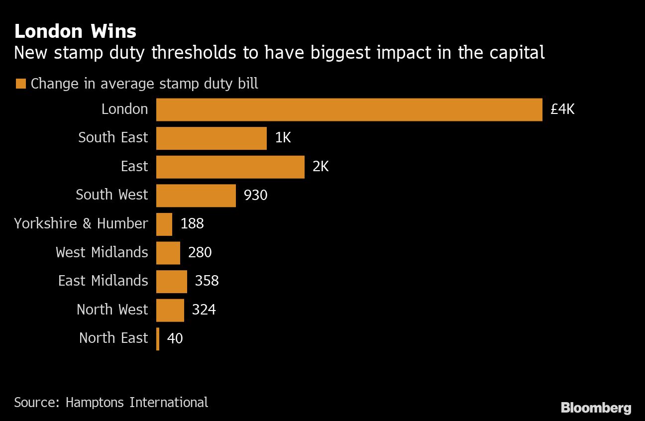 Londoners are the big beneficiaries from the decision to double the threshold for paying stamp duty, a tax on homebuying. That's because house prices in the capital are twice as high as the national average at more than £540,000, according to Land Registry data. Almost half that amount is now tax free, with the relief for first-time buyers even more generous.