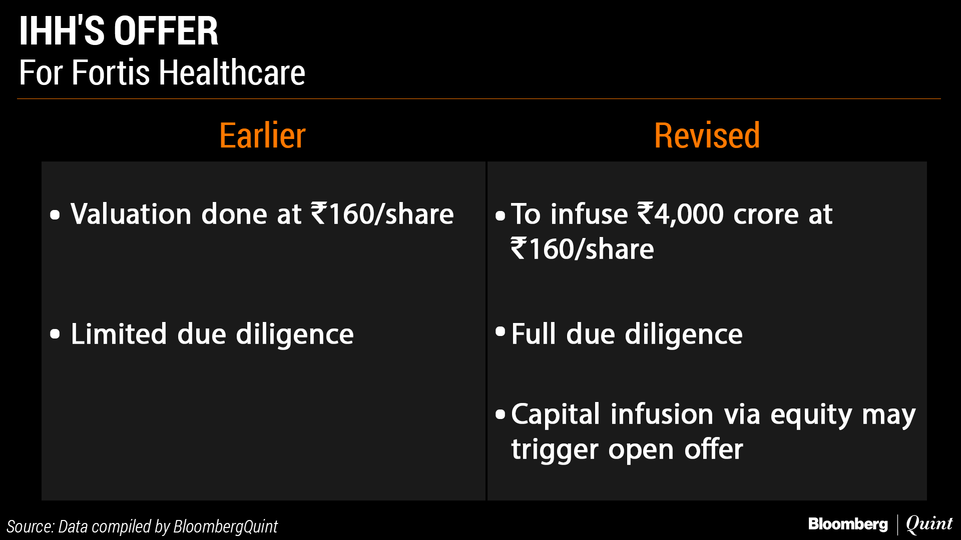 Asia's most valuable hospital operator IHH Healthcare Bhd. had first proposed a potential bid of up to $1.3 billion to acquire control of Fortis. The Rs 160 per share offer topped that of Manipal. Fortis said that they couldn't engage with IHH because of Manipal's binding offer.