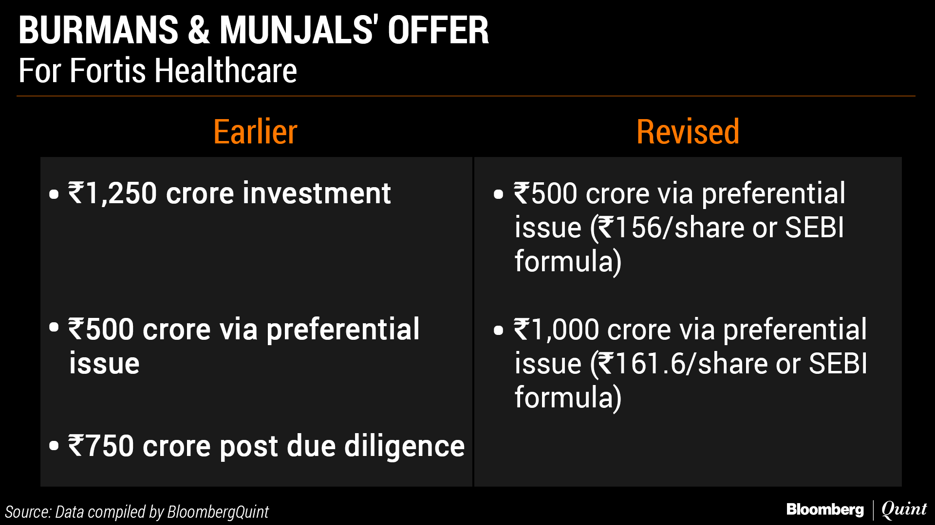 The Munjal and Burman families jointly entered the race for Fortis offering to invest Rs 1,250 crore through a preferential allotment. Later as the race intensified, they too improved their offer to a Rs 1,500 crore direct investment.