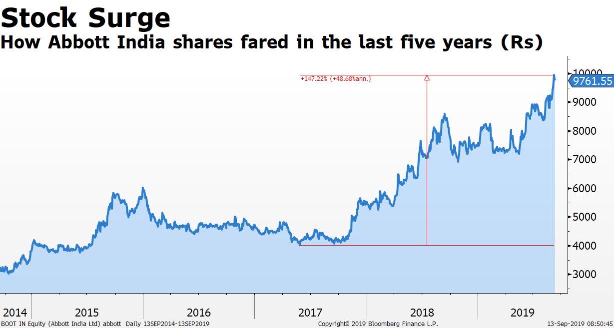 Shares of Abbott India Ltd. surged to a record this year outperforming peers as its brands increasingly outsold competitors.