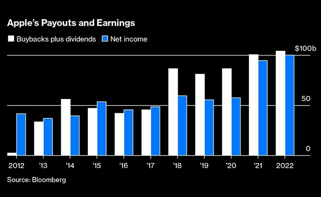 In the past five years, the company has generated $454 billion in cash from operations. Rather than plow those profits into acquisitions of marquee companies, Apple has returned all that cash—and then some—to shareholders in the form of stock buybacks and dividends.