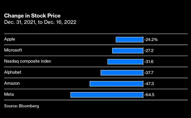 While Apple has declined 24 per cent, Meta Platforms Inc. has lost 64 per cent of its value and Amazon.com Inc. is down 47 per cent.