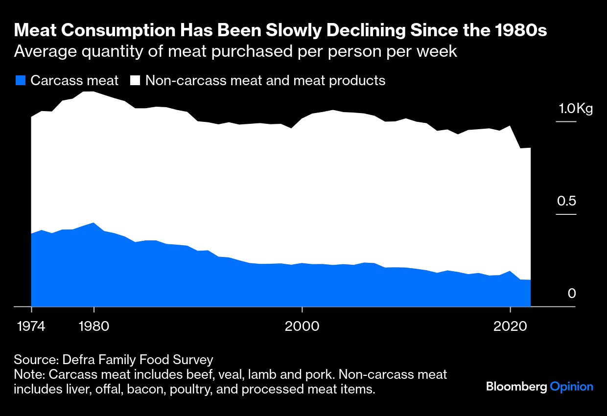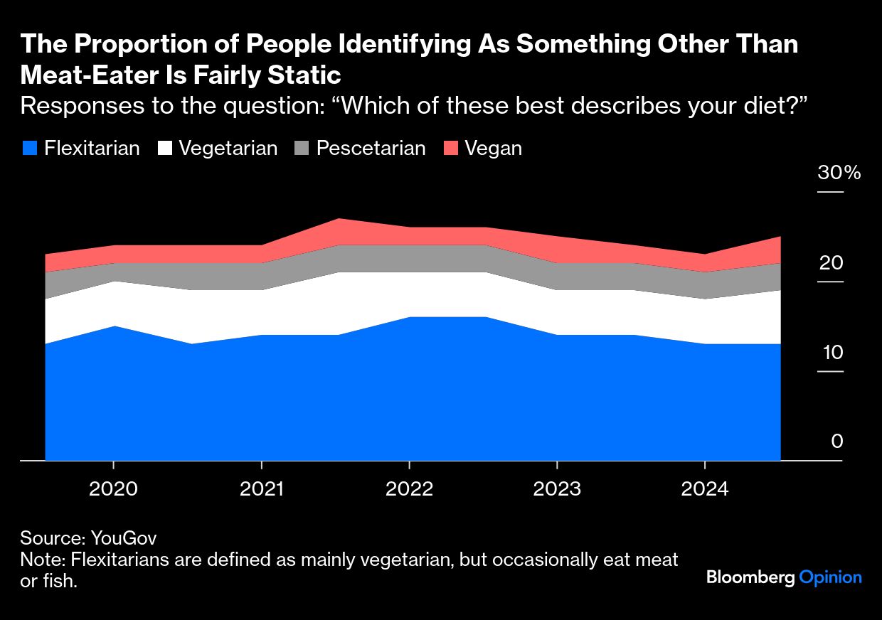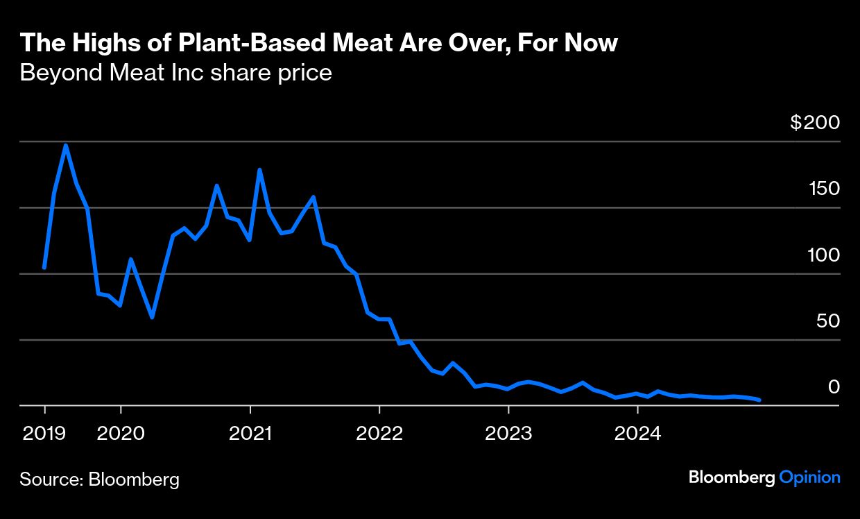 A few years ago it felt like there was a lot of momentum behind the transition to plant-based (or at least plant-heavy) diets. New alternative proteins from companies including Impossible Foods Inc. and Beyond Meat Inc. were hitting the market, and there was a boom in specialist vegan eateries. These days, Beyond Meat's stock price has plummeted, and there's a rash of stories about vegan restaurants having to add meat to their menus in order to survive.