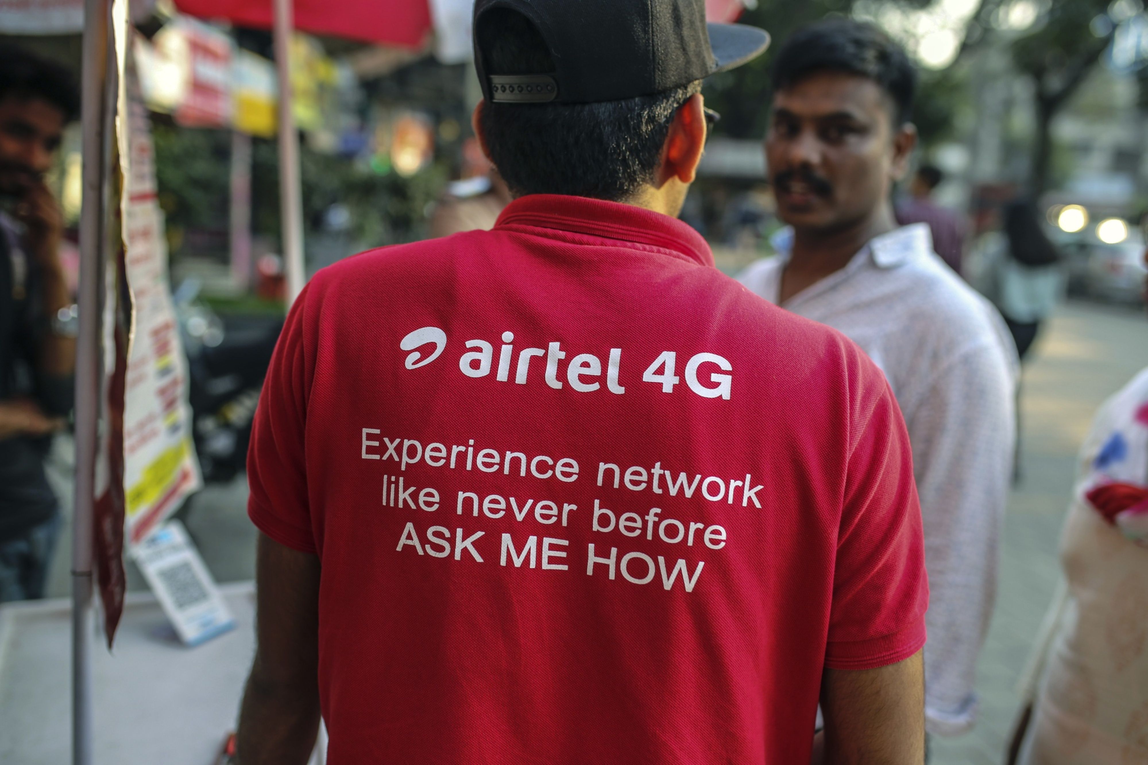 An employee serves a customer at a stall selling Bharti Airtel Ltd. SIM cards outside a mobile phone store in Mumbai. Photographer: Dhiraj Singh/Bloomberg