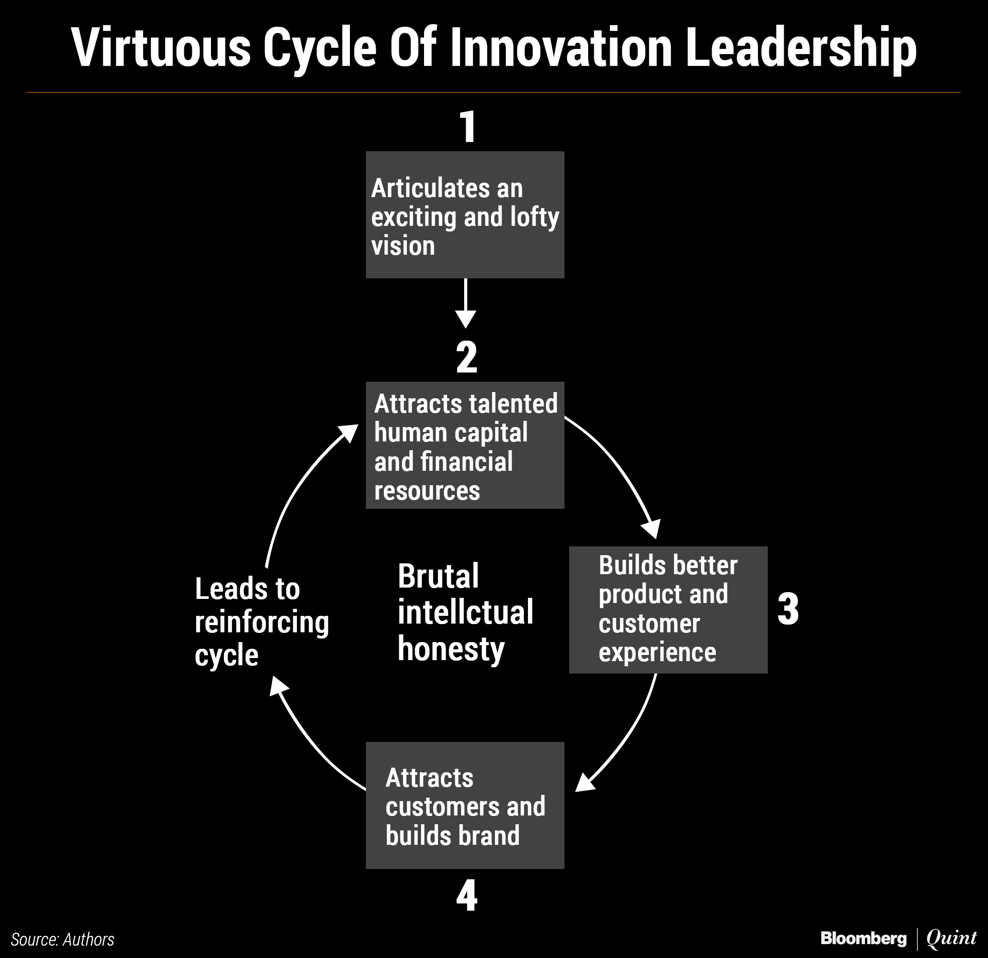 Going back to step number two: talented human capital and investors are attracted to companies and projects with a valuable brand and loyal customers. Thus, the cycle repeats.