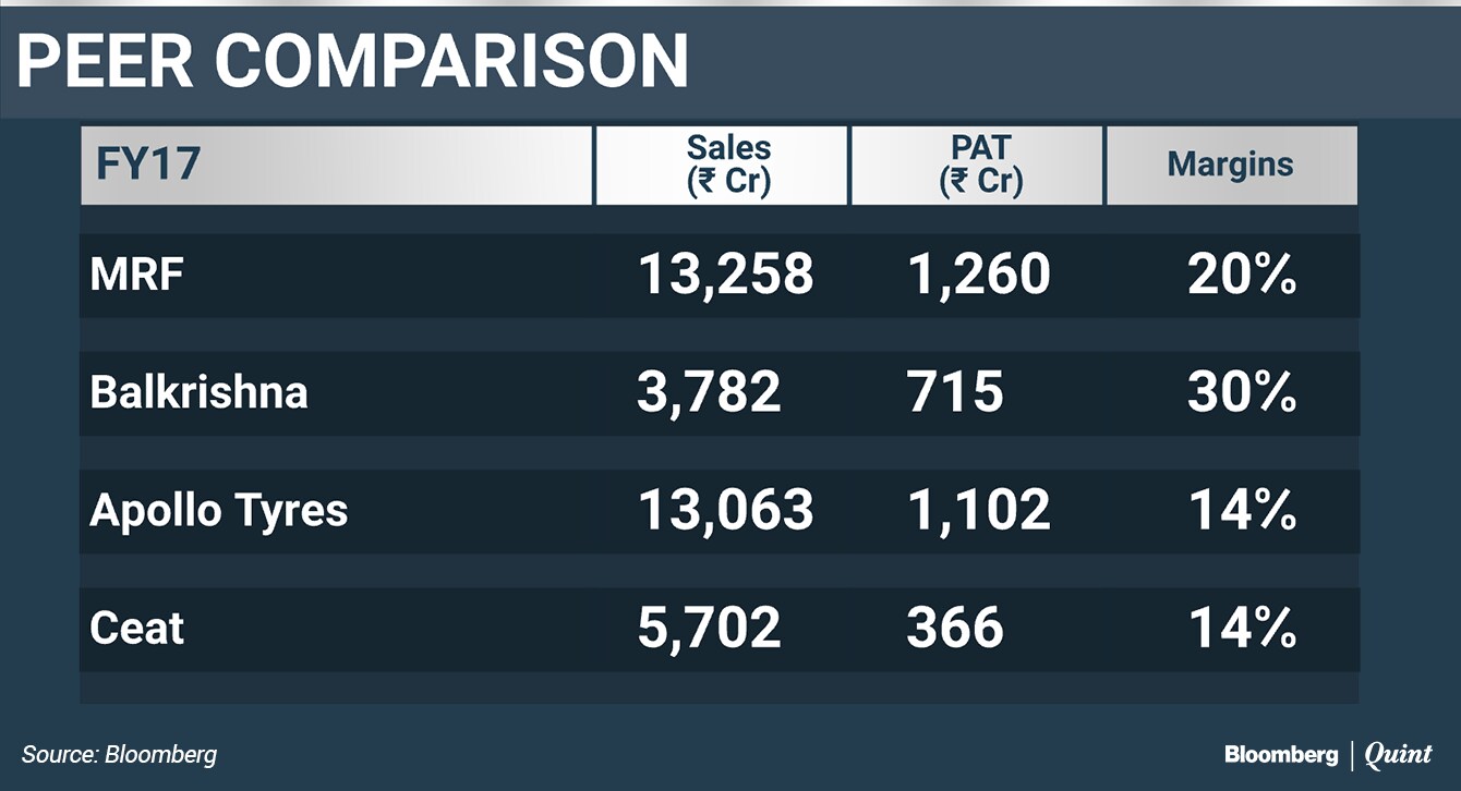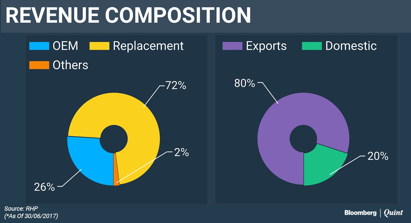 Exports contribute about 80 percent of Balkrishna Industries' revenue, with a large chunk of it coming from replacement demand. Margins at 30 percent are the highest in the industry.