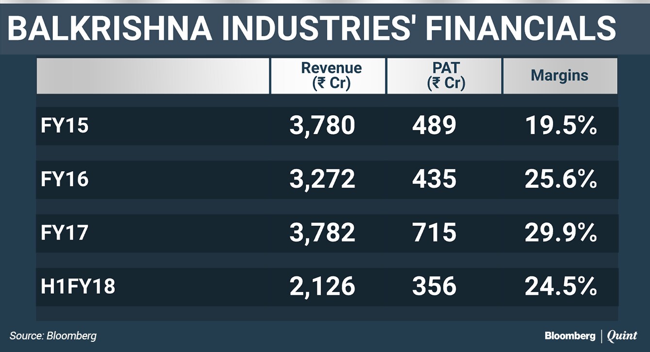 Balkrishna Industries' volumes rose 17 percent in FY17 after four years of single-digit or negative growth, brokerage Nirmal Bang said. Its earnings are expected to grow at a 17 percent annualised rate on robust margins, benign commodity prices and strong realisations, it said.
