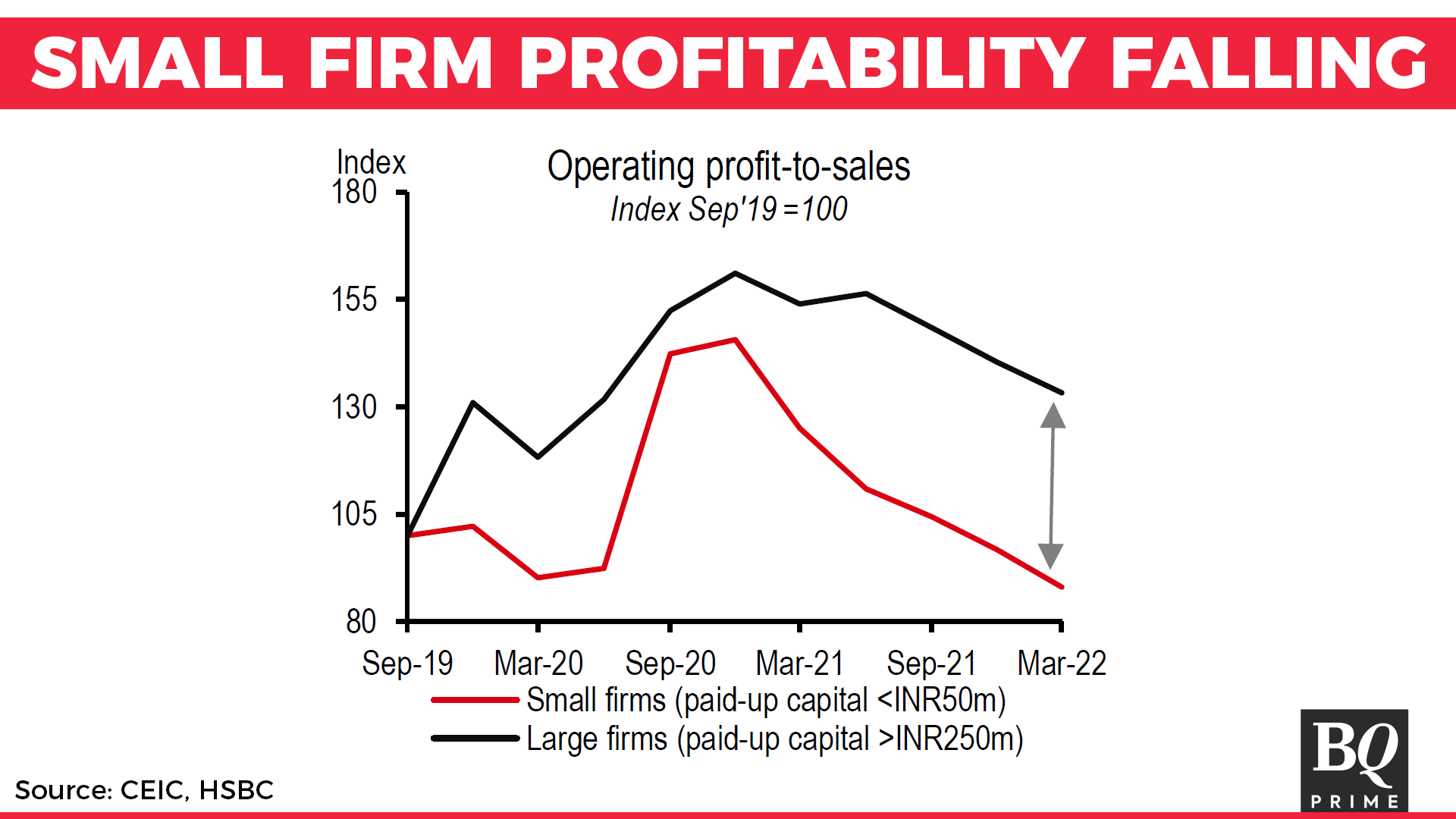 "Small firms are not as energy efficient as large ones and don't have as much bargaining power in the market for inputs. As a result, small and informal firms have been losing market share, and their profitability has been hurting," HSBC economists said.