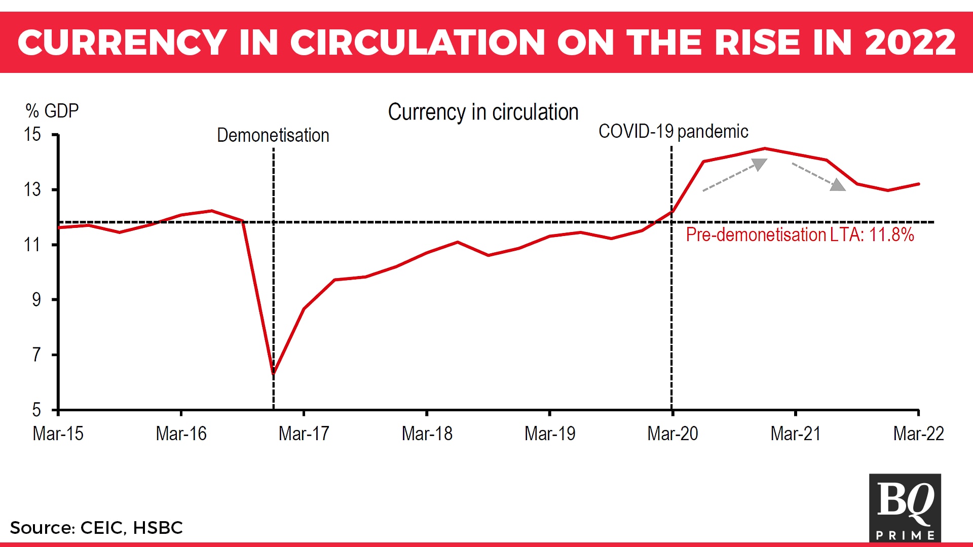 According to HSBC economists Pranjul Bhandari, Aayushi Chaudhary and Priya Mehrishi, rising inflation could be responsible for about 40% of the increase in cash demand.
