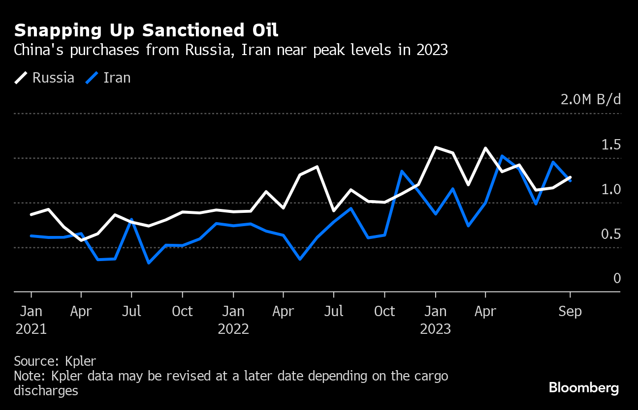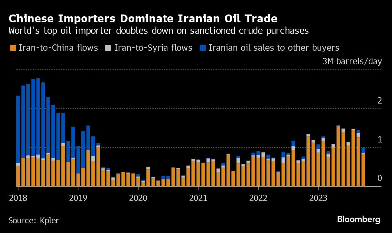 (Bloomberg) -- Washington's hawks are demanding that President Joe Biden's administration tighten US sanctions on Iran as punishment for its support of Hamas, the militant group behind the attacks that triggered the current conflict with Israel. Tehran, they argue, has been exporting more oil over recent months than it has in years.