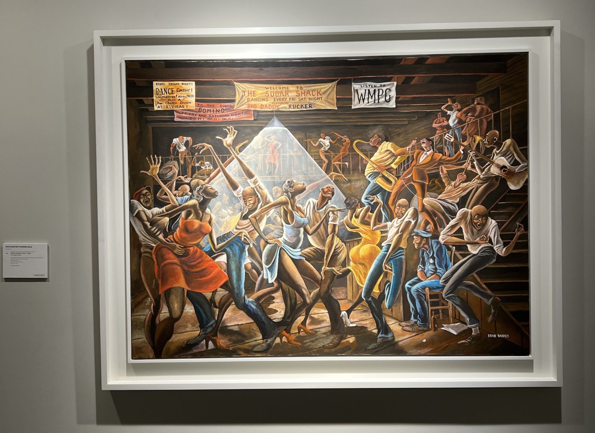 Perkins had come to Christie's in New York for the express purpose of buying , a 1976 painting by the football player-turned-artist Ernie Barnes, whose work has belatedly been recognized as a seminal part of postwar American art. The painting in question depicts a dance hall populated by joyous Black dancers and musicians. It's a duplicate of the painting Barnes made for Marvin Gaye's studio album and is the image featured in the 1970s sitcom . “In my mind, there's nothing more American than that piece of art,” Perkins says.
