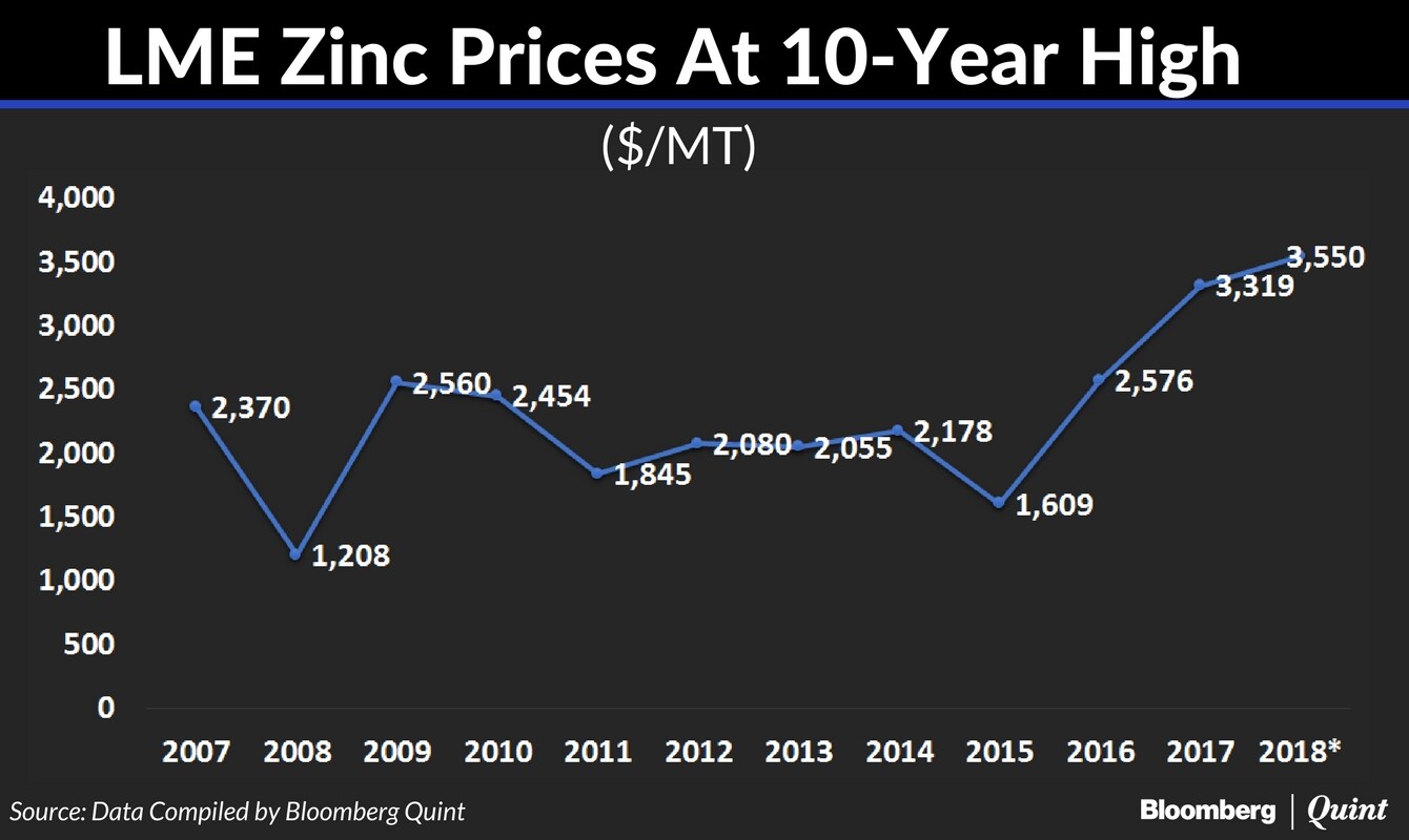 Chinese mining restrictions hurt supply, pushing up prices. That led to a higher realisation for Vedanta. LME Zinc is at its highest in a decade at about $3,550 a tonne. And it's expected to rise further with depleting inventories, IIFL said.