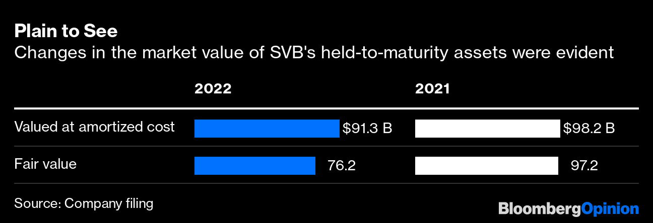 The transparency of the accounts may well have helped many investors see the dynamics. But that doesn't let KPMG off the hook. At issue is whether it could have drawn more attention to the precariousness of the situation. Even if the auditors believed it was unnecessary to question SVB's ability to continue as a going concern, they had other options. KPMG could, for example, have used a so-called “emphasis-of-matter” paragraph to flag the unrealized losses on the securities portfolio (especially as its designation as “held to maturity” avoided the hit being booked) and the concentration of the deposit base in the technology industry.